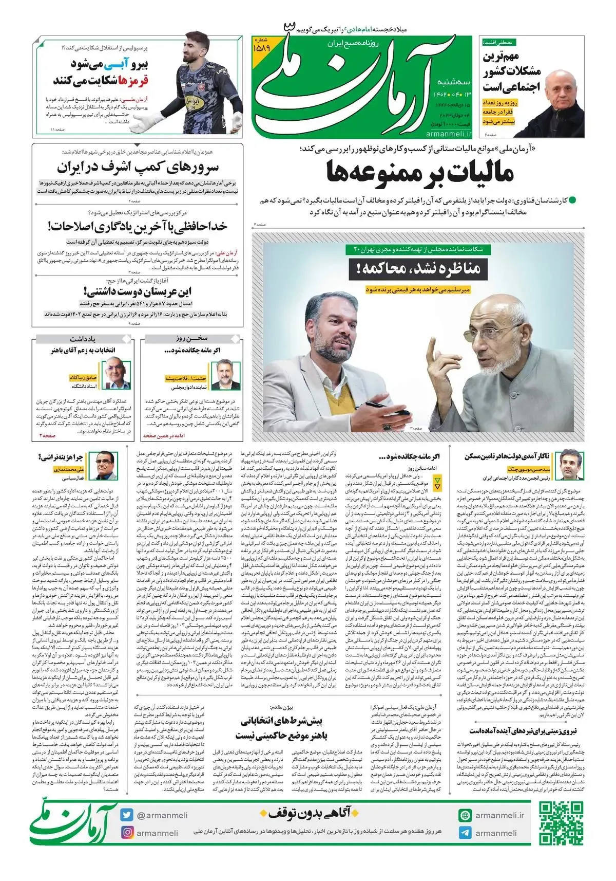 روزنامه آرمان ملی - سه‌شنبه 13 تیر - شماره 1589