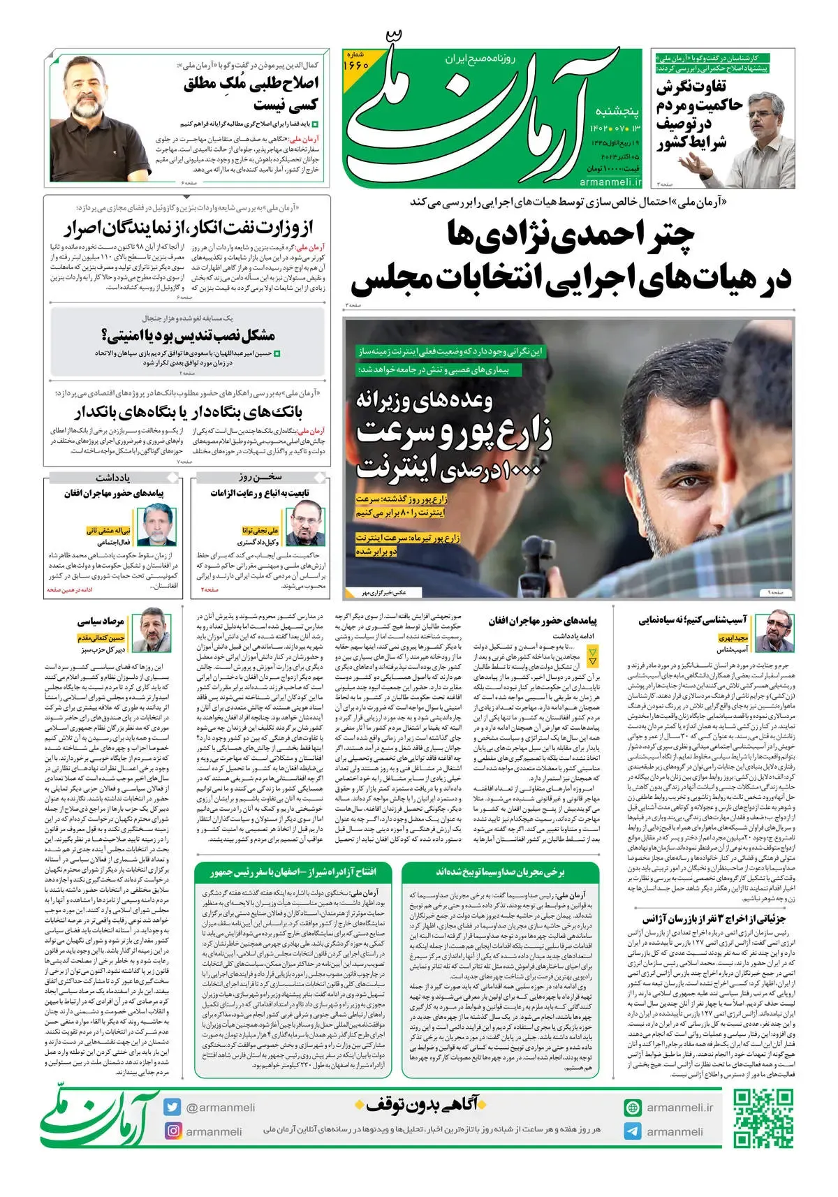 روزنامه آرمان ملی - پنجشنبه 13 مهر - شماره 1660
