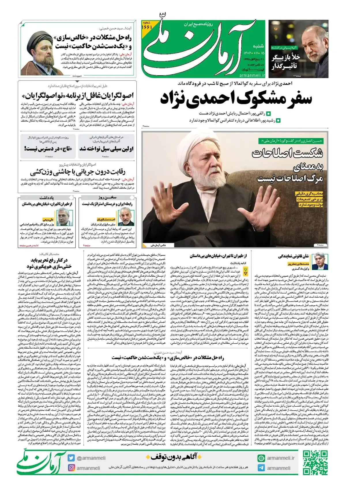 روزنامه آرمان ملی - شنبه 15 مهر - شماره 1661