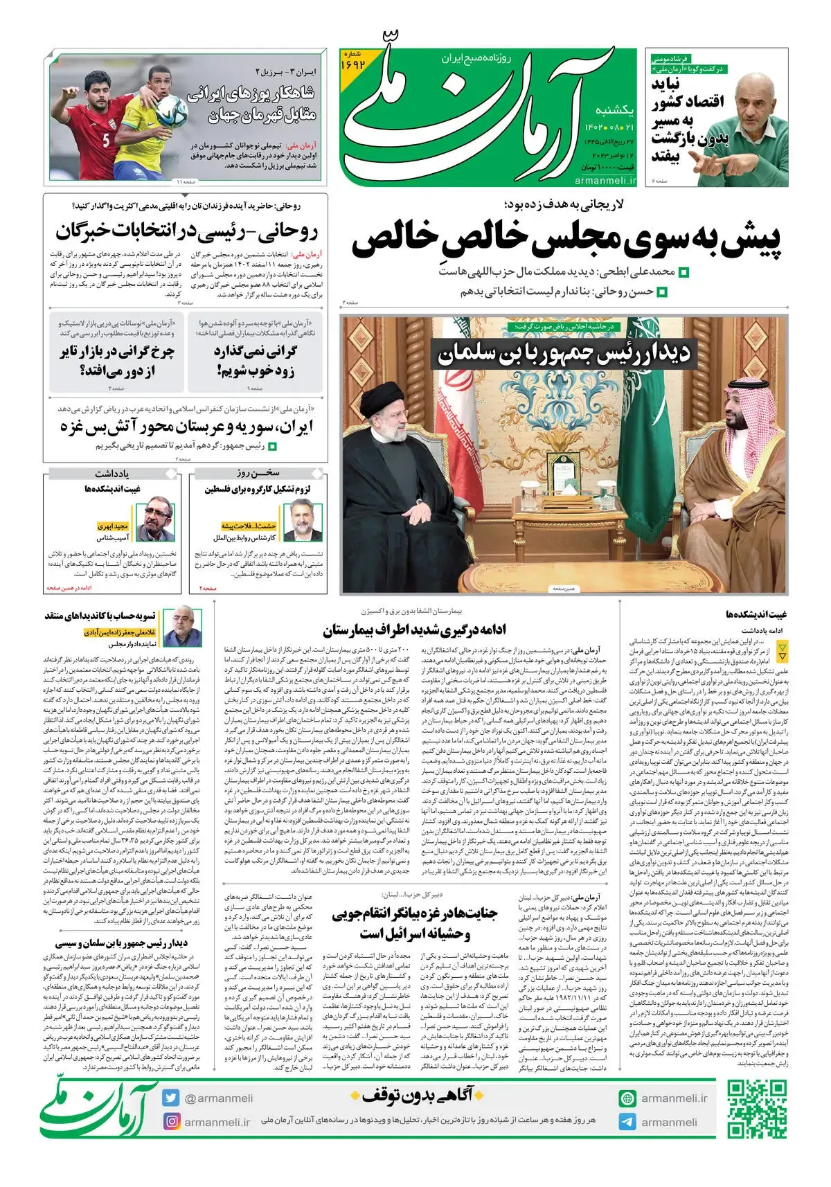 روزنامه آرمان ملی - یکشنبه 21 آبان -شماره 1692