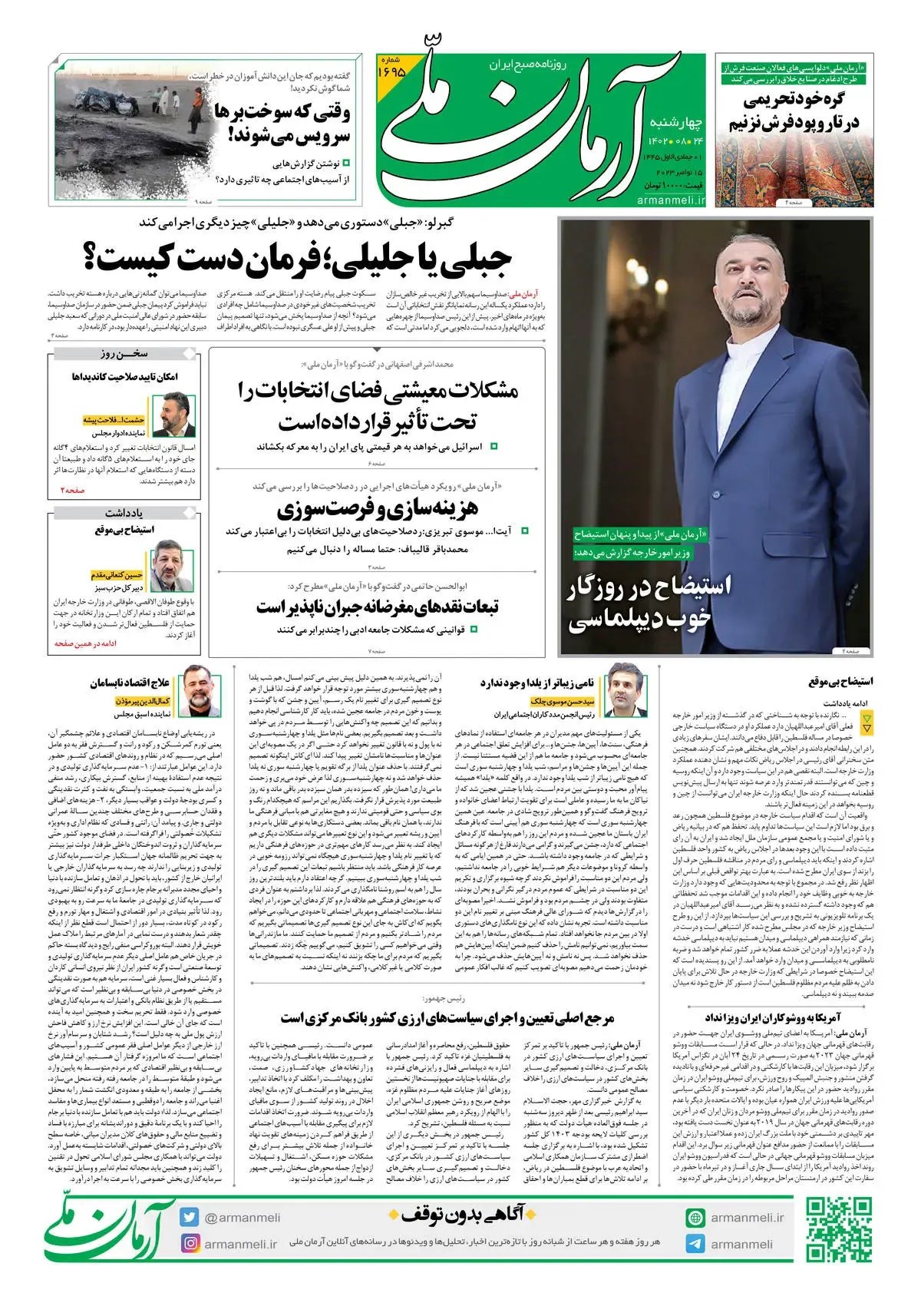 روزنامه آرمان ملی - چهارشنبه 24 آبان - شماره 1695