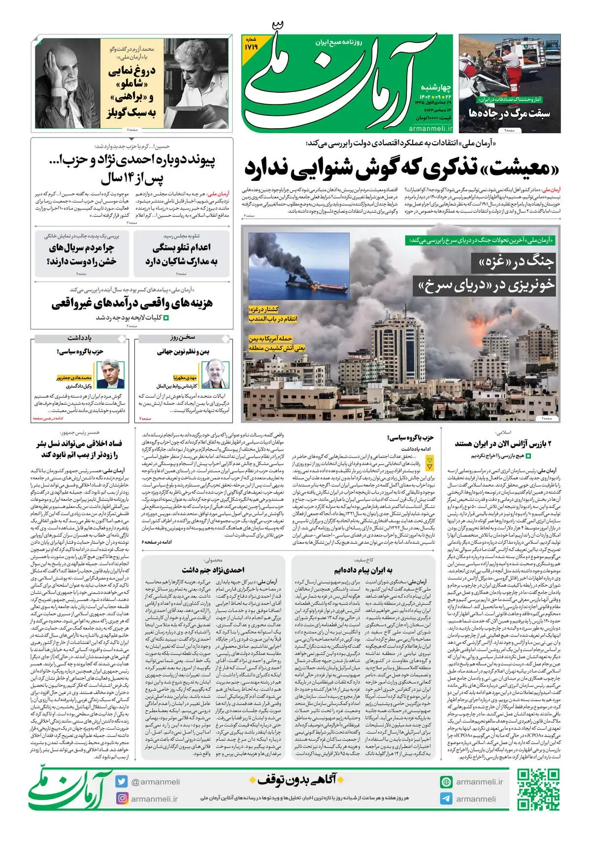 روزنامه آرمان ملی - چهارشنبه 22 آذر - شماره 1719
