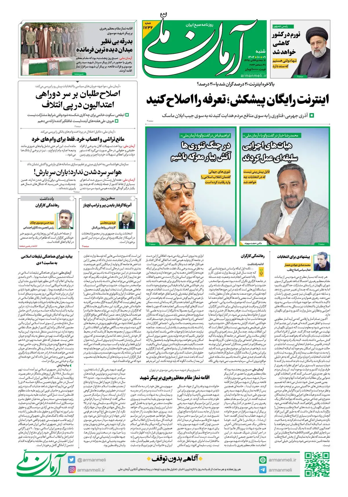 روزنامه آرمان ملی - شنبه 9 دی - شماره 1732