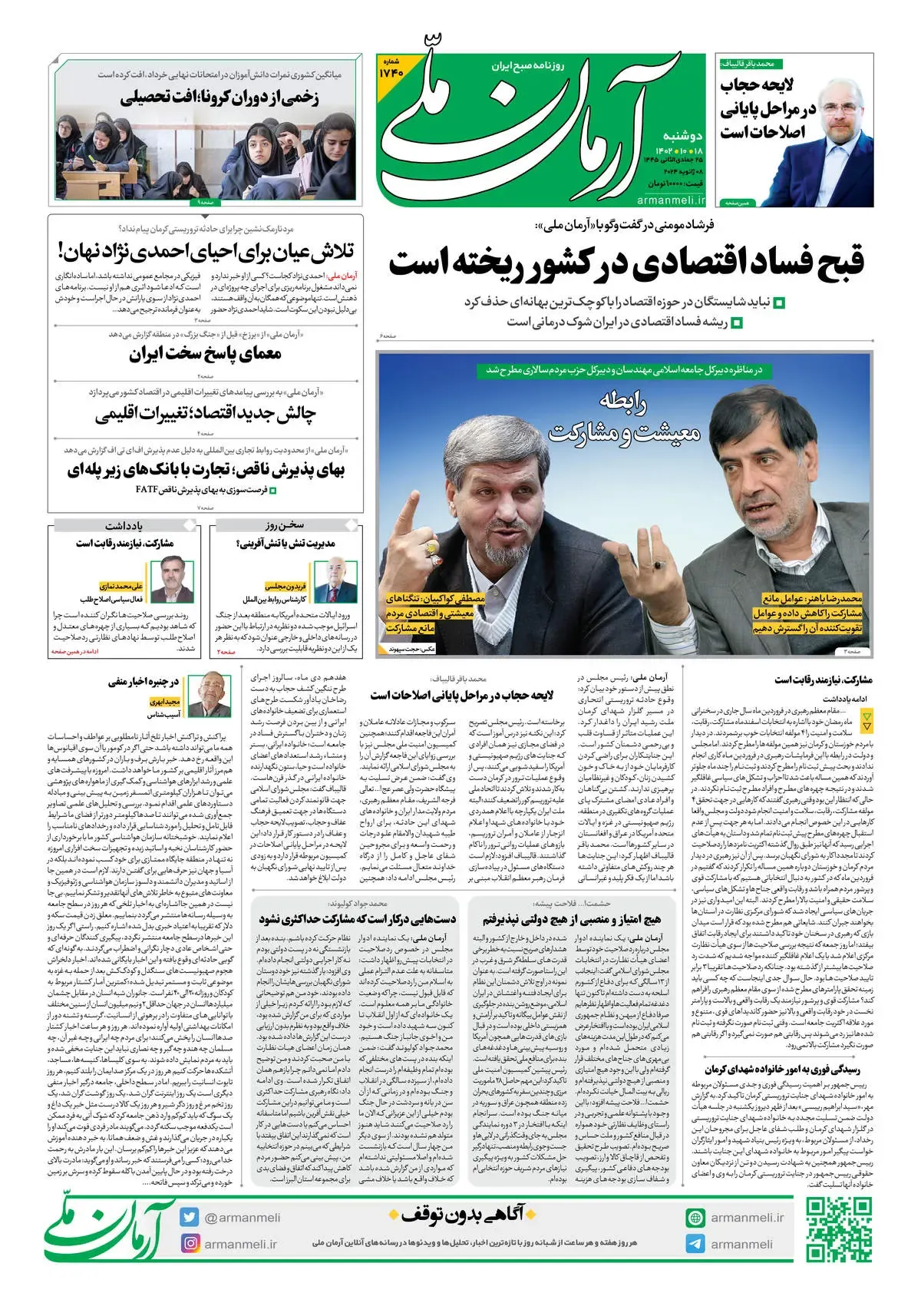 روزنامه آرمان ملی - دوشنبه 18 دی - شماره 1740