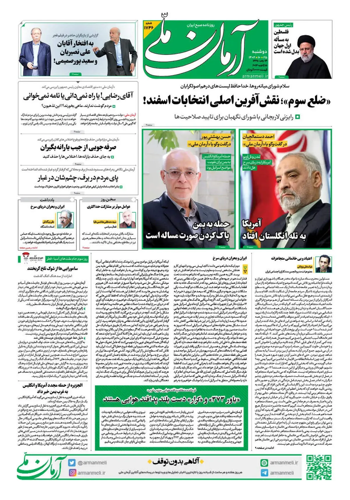 روزنامه آرمان ملی - دوشنبه 25 دی - شماره 1746