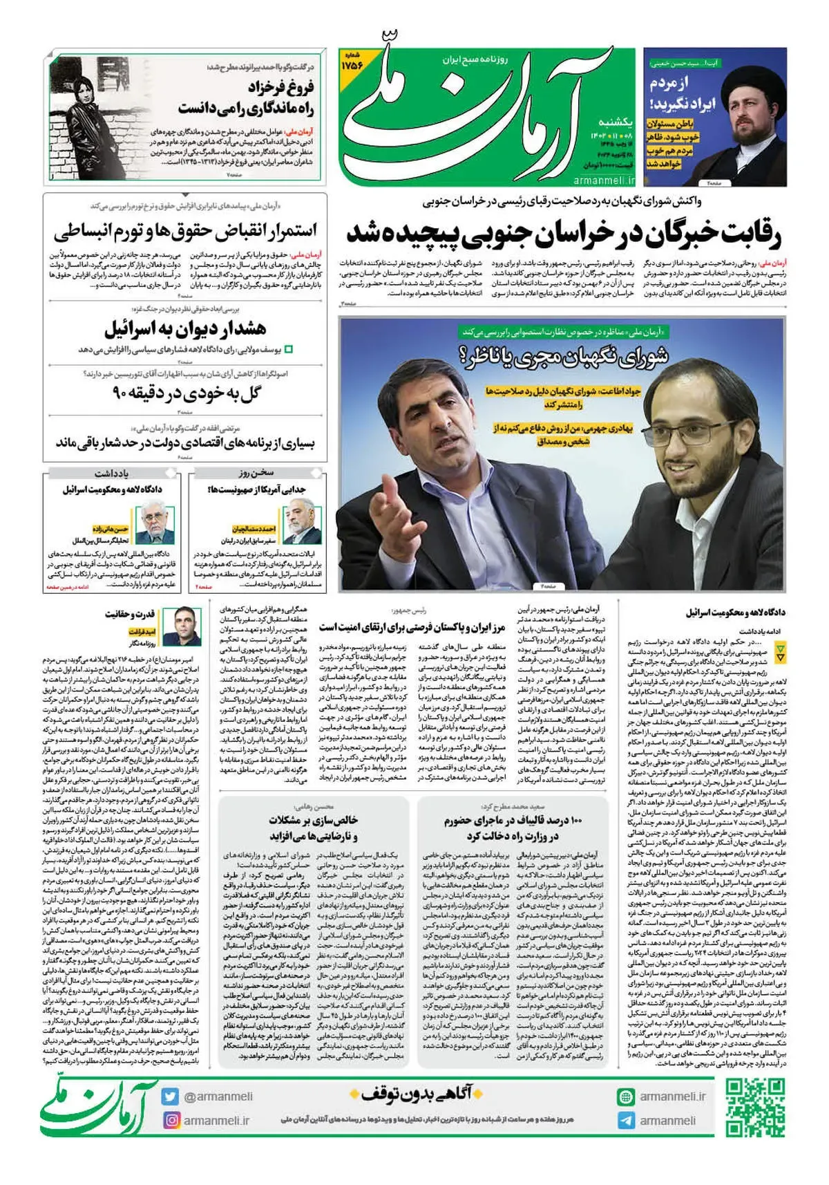 روزنامه آرمان ملی - یکشنبه 8 بهمن - شماره 1756