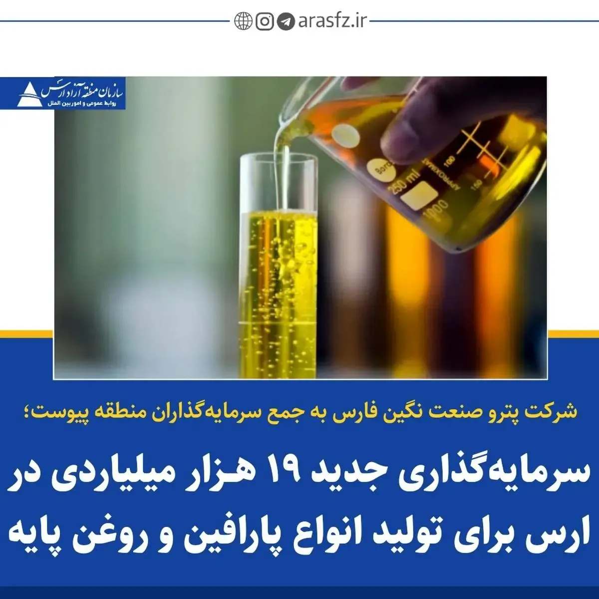 سرمایه گذاری جدید ۱۹ هزار میلیاردی در ارس برای تولید انواع پارافین و روغن پایه