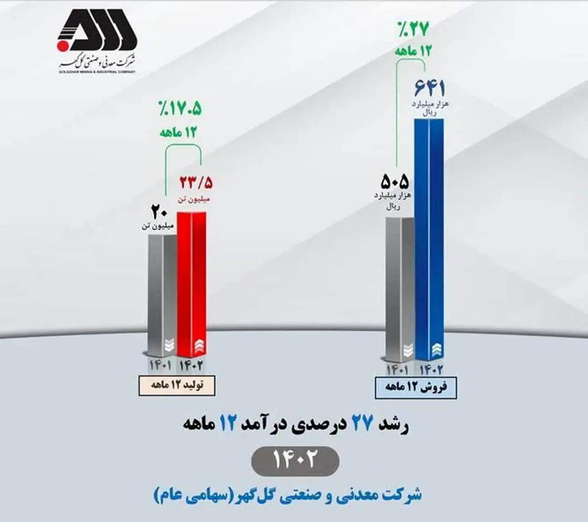 رشد ۲۷ درصدی درآمد ۱۲ ماهه ۱۴۰۲ شرکت معدنی و صنعتی گلگهر