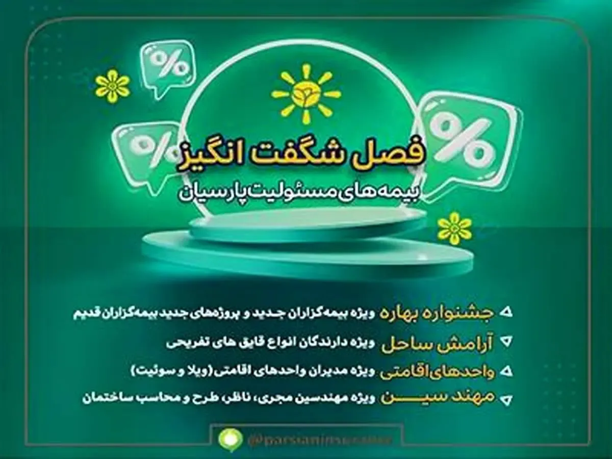 شرکت بیمه پارسیان با هدف ارایه خدمات نوین و حمایت از اقشار مختلف جامعه، همزمان با آغاز فصل بهار، جشنواره‌های فروش و طرح‌های ویژه‌ای را در نظر گرفته است.