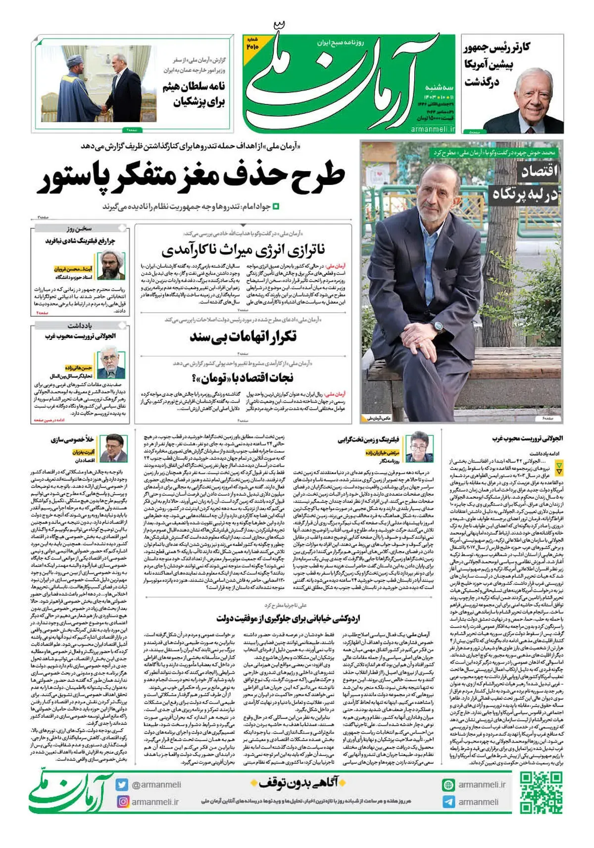 روزنامه آرمان ملی - سه شنبه 11 دی - شماره 2010