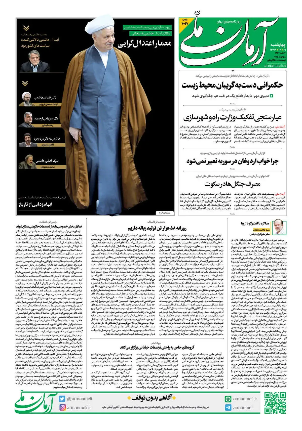 روزنامه آرمان ملی - چهارشنبه 19 دی - شماره 2017