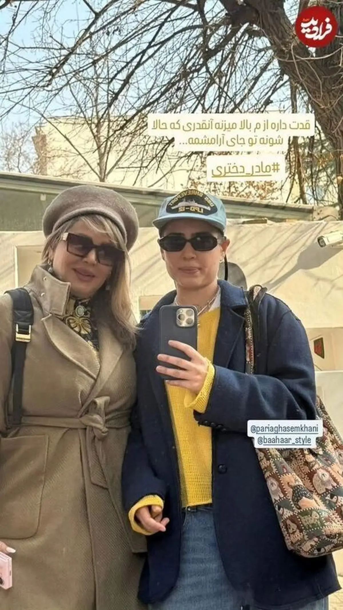 تصویری از استایل زمستانی و جذاب «پریا قاسم خانی» به همراه «بهاره رهنما» پر از احساس دنیای مادر -دختری که از دل برآمده؛ قدت داره ازم بالا می زنه به قدری که حالا شونه ی تو جای آرامشمه...