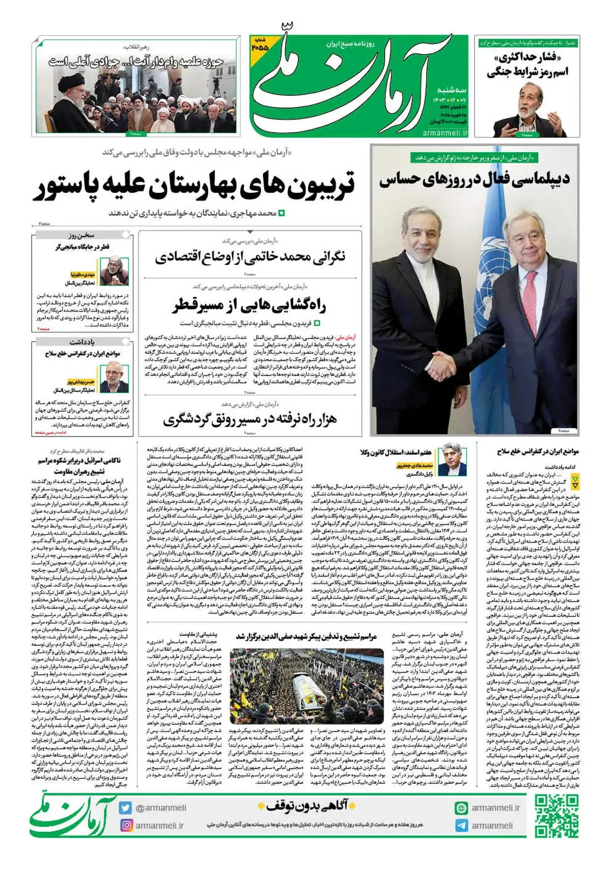 روزنامه آرمان ملی - سه شنبه 7 اسفند - شماره 2055