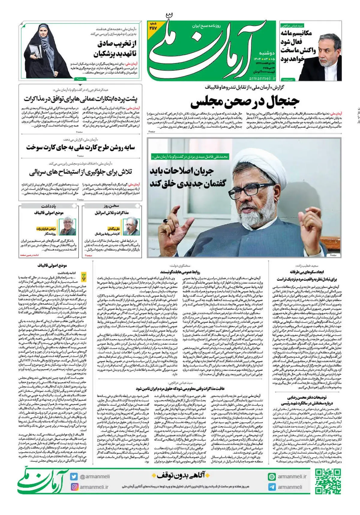 روزنامه آرمان ملی - دوشنبه 5 خرداد - شماره 2117
