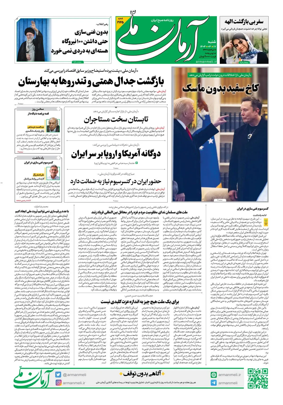 روزنامه آرمان ملی - شنبه 17 خرداد - شماره 2125