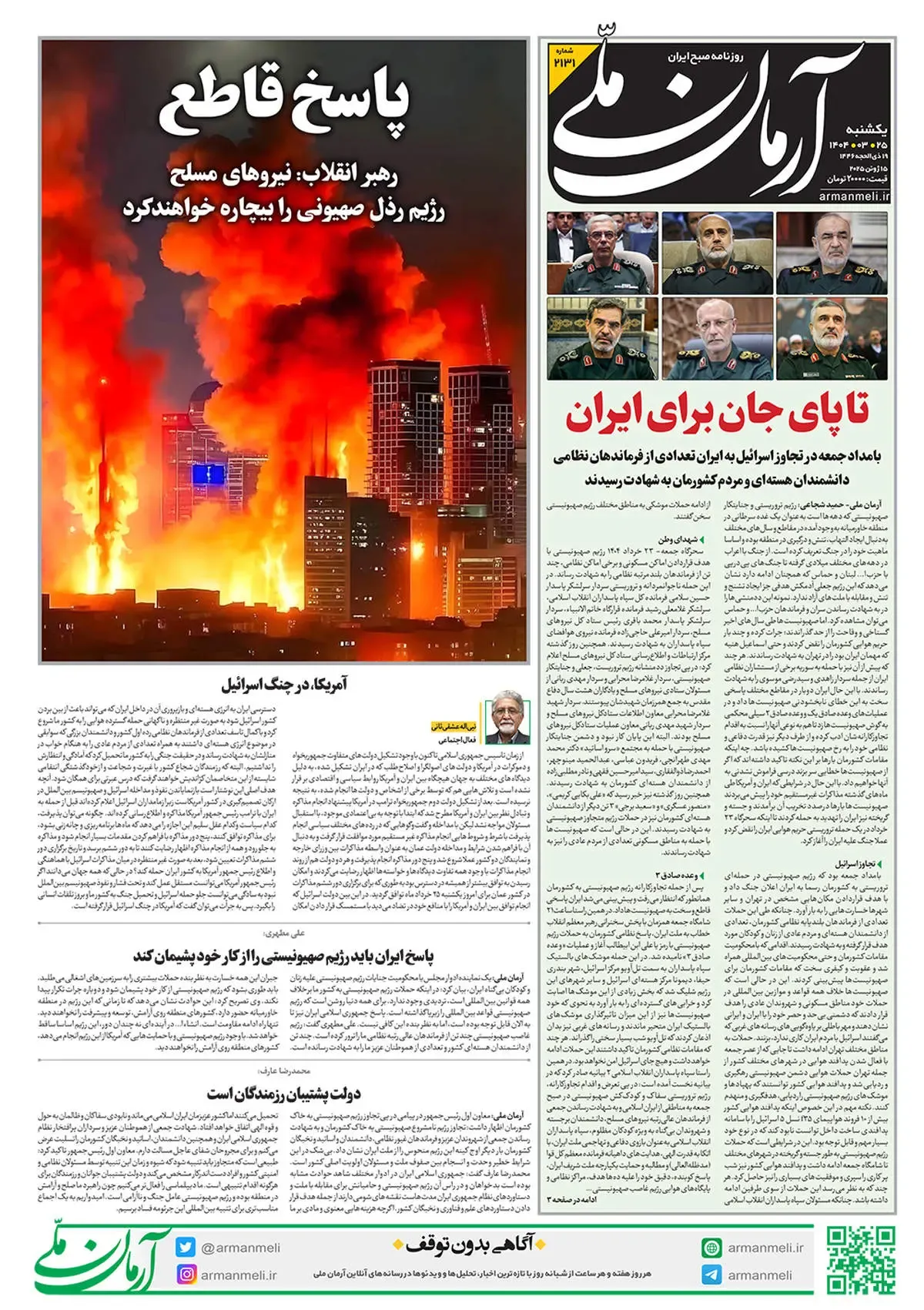 روزنامه آرمان ملی - یکشنبه 25 خرداد - شماره 2131