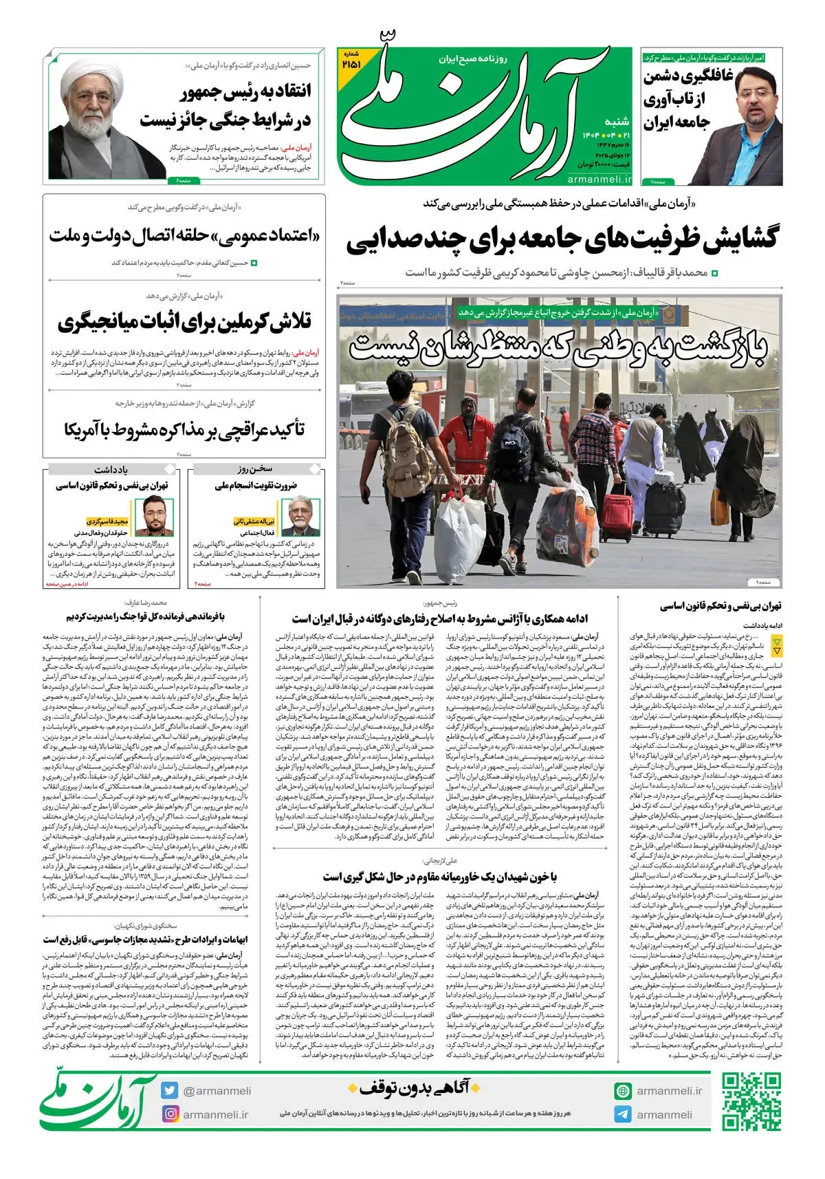 روزنامه آرمان ملی - شنبه 21تیر - شماره 2151
