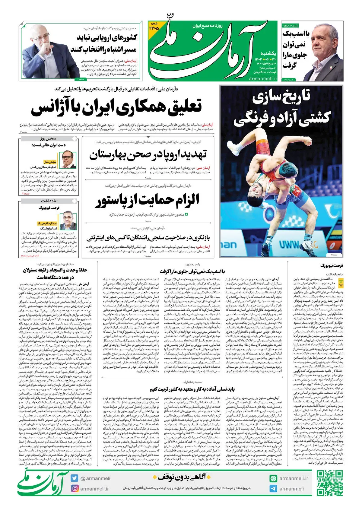 روزنامه آرمان ملی - یکشنبه 30شهریور - شماره 2205
