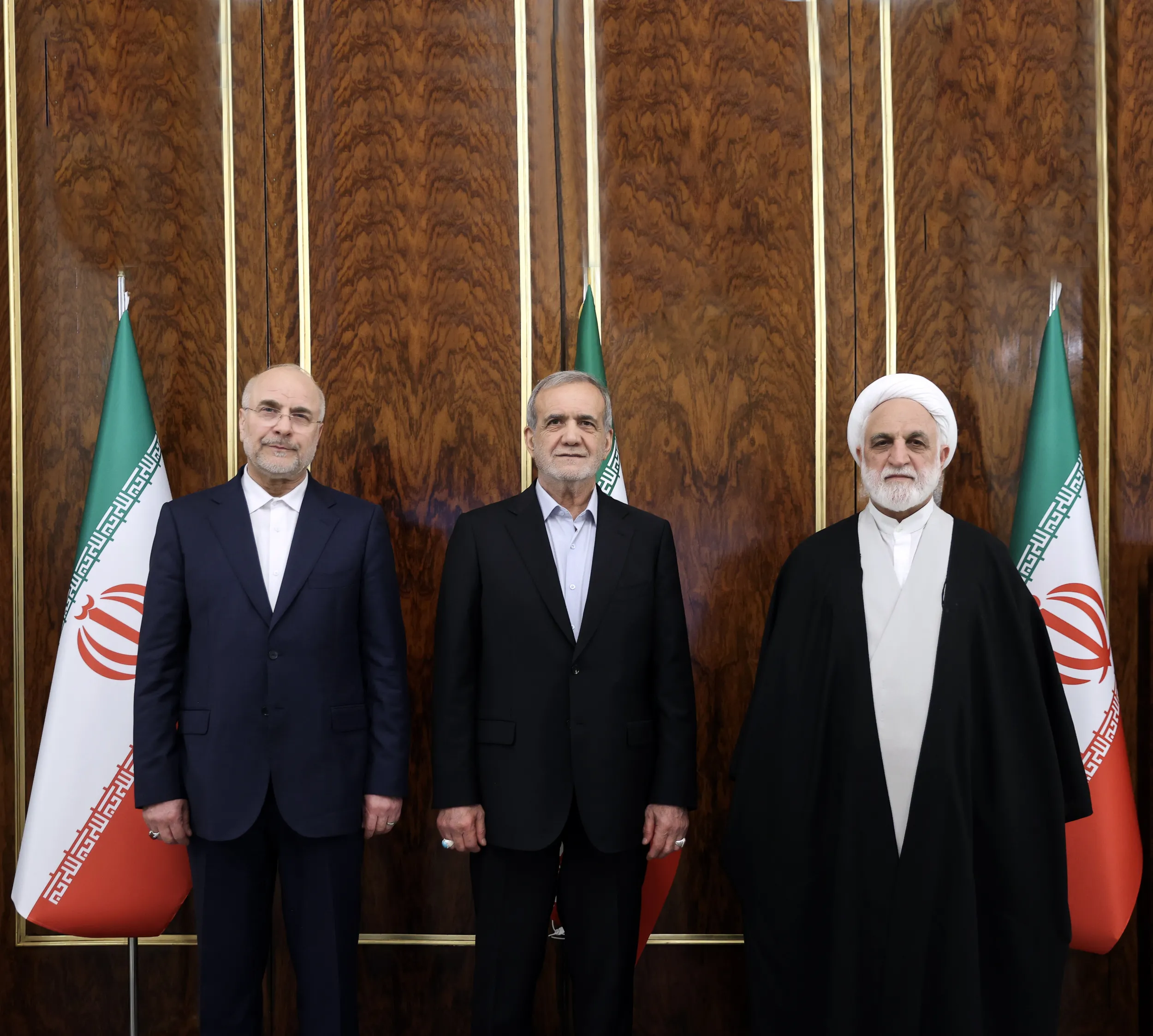 سران سه قوه در پیامی مشترک از ملت فهیم، نجیب و لحظه‌شناس ایران که آگاهی خنثی‌کردن پیچیده‌ترین توطئه‌های دشمنان علیه یکپارچگی ایران قوی و مستقل را داشته و دارند قدردانی کردند. مسعود پزشکیان رئیس‌جمهور، محمدباقر قالیباف رئیس مجلس و حجت‌الاسلام محسنی اژه‌ای رئیس قوه قضائیه، در این پیام مشترک آورده‌اند: «خداوند عزیز و رحمان را شکرگزاریم که ما را به خدمتگزاری ملتی فهیم، نجیب و لحظه‌شناس برگزید که آگاهی خنثی‌کردن پیچیده‌ترین توطئه‌های دشمنان علیه یکپارچگی ایران قوی و مستقل را داشته و دارند. همچنین به ما رهبر حکیم و فرزانه‌ای عطا فرمود که با رهنمود‌های روشنگر و راهگشا در سخت‌ترین شرایط، زمینه‌ساز اصلاح امور و حل مشکلات جامعه را داشته است.» در ادامه پیام سران قوا آمده است: «تاریخ پر فراز و نشیب این خاک مقدس مملو از فداکاری و ایستادگی و رشادت مردم قهرمانی بوده است که برای استقلال، اقتدار و یکپارچگی ایران عزیز معجزه‌ها آفریده‌اند. در فتنه پیچیده اخیر نیز که با کارگردانی دشمنان دیرینه انقلاب اسلامی و بازیگری عناصر تروریست و اغتشاش‌گران بی‌وطن به‌وقوع پیوست، هوشیاری ملت عزیز ایران در جداسازی صف معترض از آشوب‌گران و مجاهدت مسئولانه مدافعان کشور اعم از نیروی انتظامی، سپاه و بسیج نقشه کثیف طراحان این سناریو را نقش بر آب کرد.» سران ۳ قوه در این پیام مشترک تاکید کرده‌اند: «ما رؤسای سه قوه: «مجریه، مقننه و قضائیه» متناسب با اختیارات قانونی، خود را متعهد می‌دانیم که با تلاش شبانه‌روزی و با تبعیت از رهنمود‌های رهبر معظم انقلاب اسلامی و بهره‌گیری از ظرفیت نخبگان و فرهیختگان با وحدت، همدلی و هم‌افزایی در جهت حل مشکلات معیشتی و اقتصادی و تأمین امنیت عمومی کوشا باشیم و در انجام وظایف خود ذره‌ای قصور نورزیم. همچنین در رسیدگی به حوادث تروریستی اخیر ضمن توجه و کشف و شناسایی علل و ریشه‌های وقوع با رعایت نهایت انصاف و عدالت ضمن سزای قاطع قاتلان و فتنه‌گران تروریست، رأفت اسلامی و ملایمت را با فریب‌خوردگانی که نقش اساسی در حوادث تروریستی نداشته‌اند، به‌کار ببندیم و با تدبیر و حکمتی که مورد انتظار ملت بزرگ ایران است، پاسدار خون چند صد هزار شهید انقلاب اسلامی باشیم و پرچم پرافتخار جمهوری اسلامی و نام ایران و ایرانی را در جهان به اهتزاز در آوریم.»