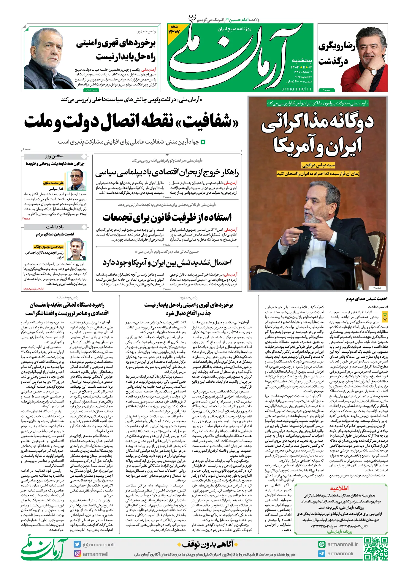 روزنامه آرمان ملی- پنج‌شنبه ۲ بهمن- ۱۴۰۴