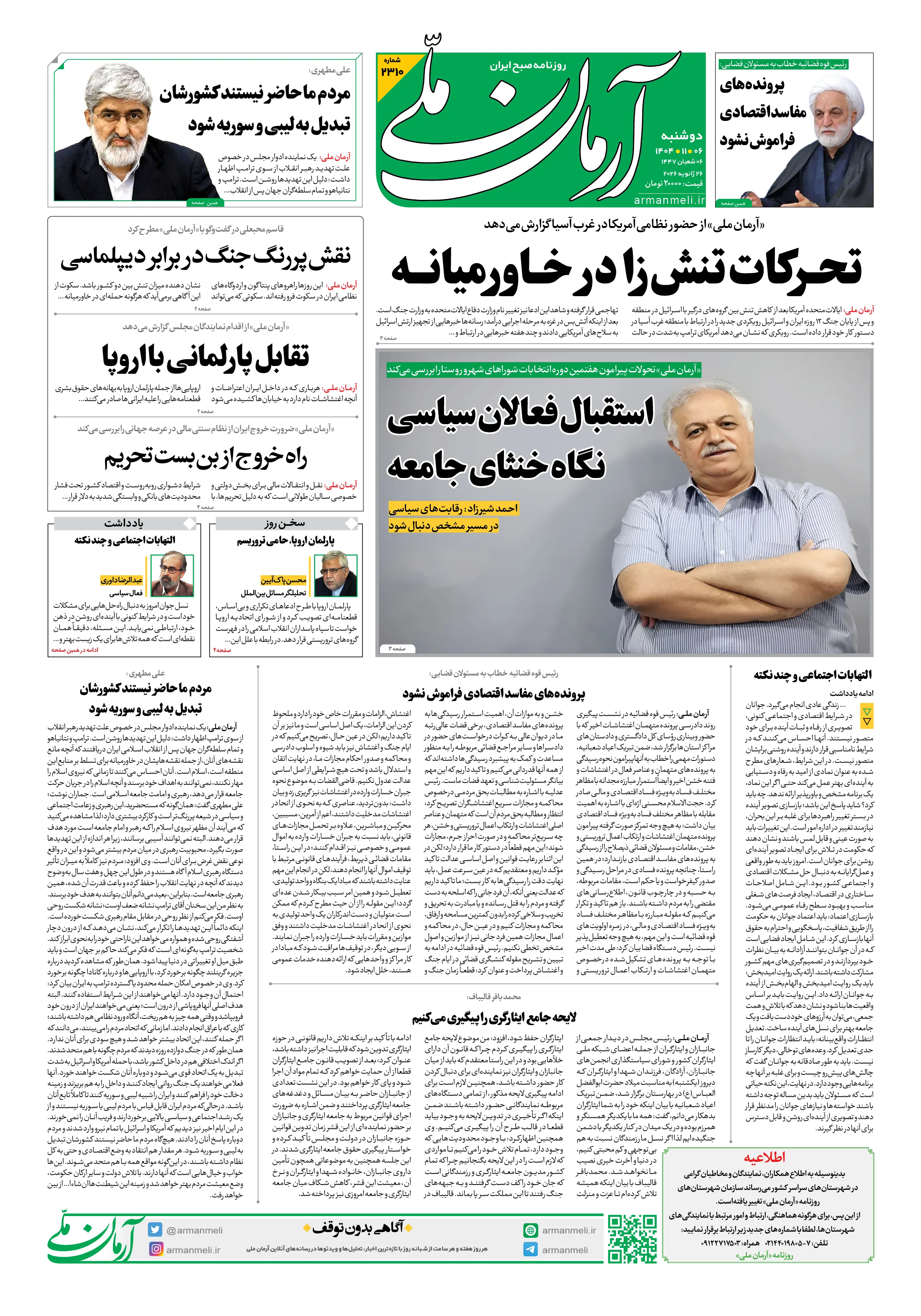 روزنامه آرمان ملی- دوشنبه- ۶ بهمن- ۱۴۰۴- شماره ۲۳۱۰