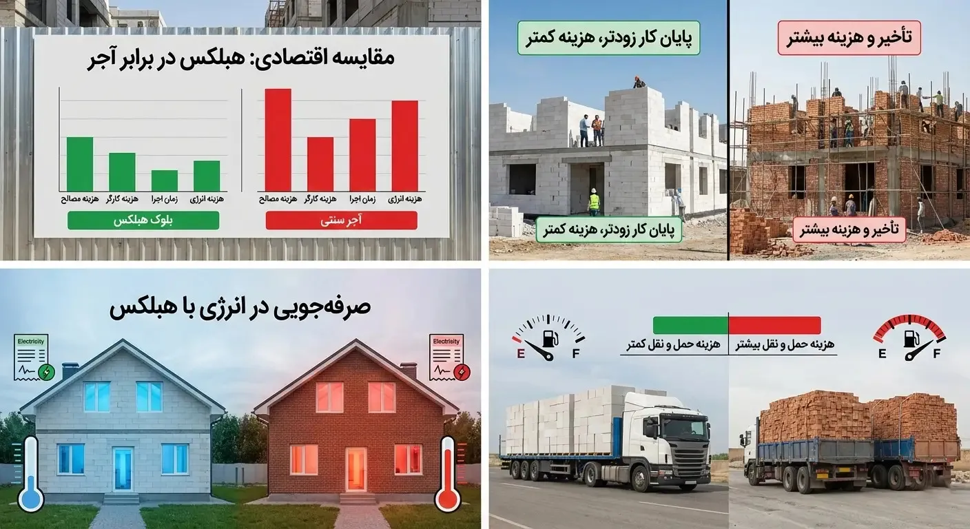 در پروژه ای که به صورت عددی بررسی ها انجام شد اگرچه هزینه خرید بلوک هبلکس حدود 10 درصد بیشتر از آجر بود اما تعداد قطعات کمتر، کاهش مصرف ملات مخصوص یا همان چسب مخصوص هبلکس ایکاد سازه و کاهش پرت مصالح باعث شد اختلاف نهایی بسیار کمتر از تصور اولیه باشد. به هر نحوی که محاسبه را انجام دهیم در آخر این بلوک aac است که برنده ی این میدان است.