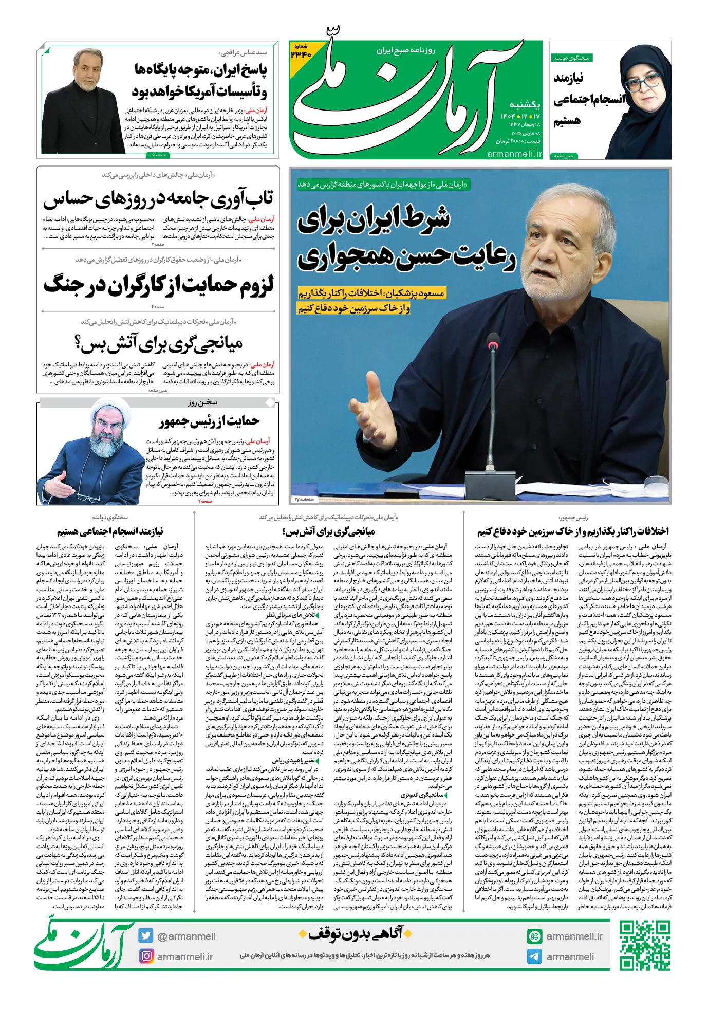 روزنامه آرمان ملی - یکشنبه - ۱۷ اسفند - ۱۴۰۴ - شماره ۲۳۴۰