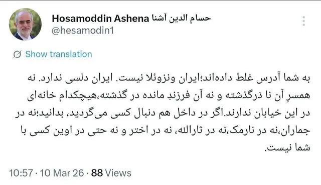 «به شما آدرس غلط دادهاند؛ ایران ونزوئلا نیست. ایران دلسی ندارد. نه همسرِ آن نا دَرگذشته و نه آن فرزندِ مانده در گذشته، هیچکدام خانهای در این خیابان ندارند.