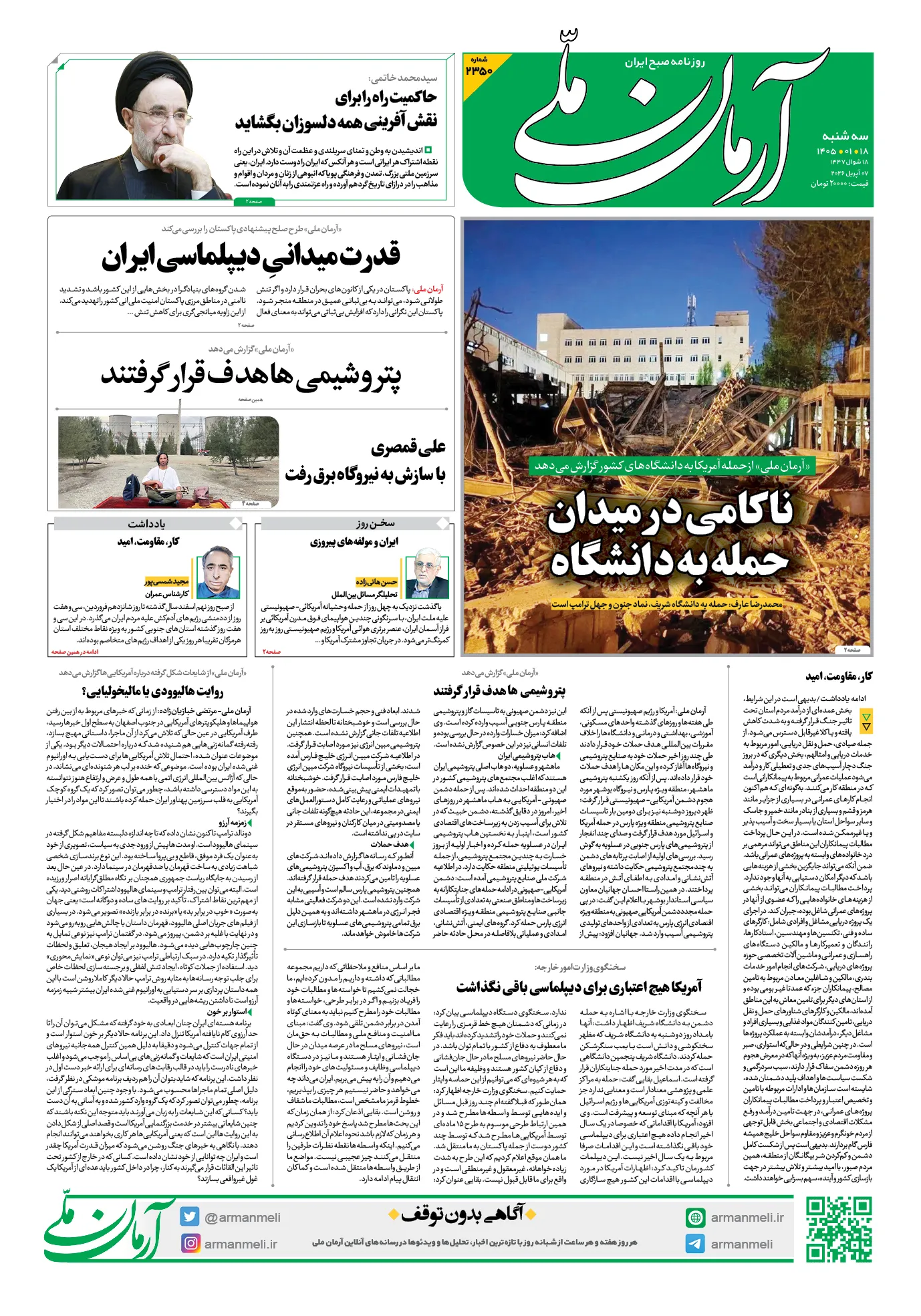 روزنامه آرمان ملی - سه شنبه - ۱۸ فروردین ۱۴۰۵ - شماره ۲۳۵۰