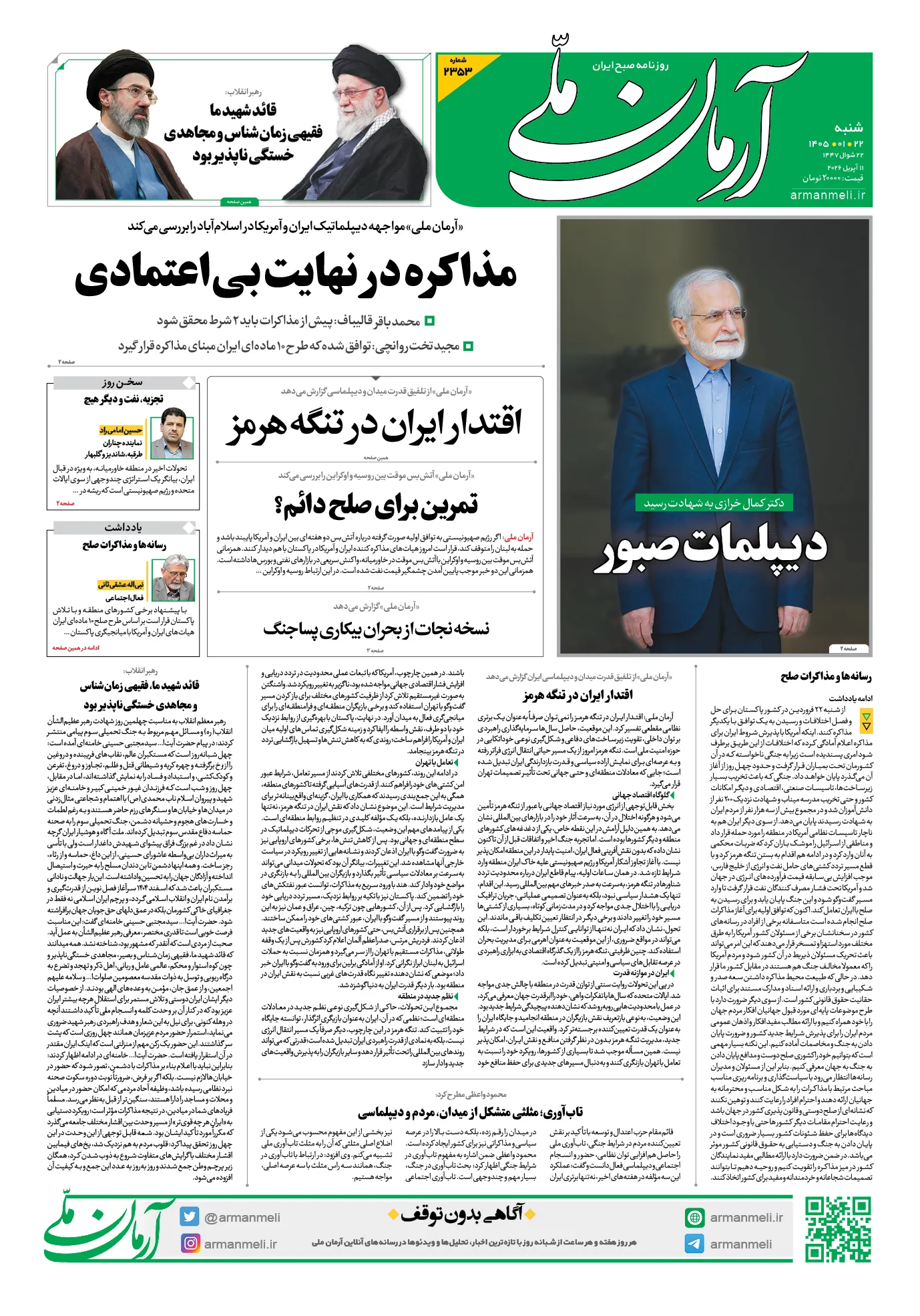 روزرنامه آرمان ملی - شنبه - ۲۲ فروردین - ۱۴۰۵ شماره ۲۳۵۳