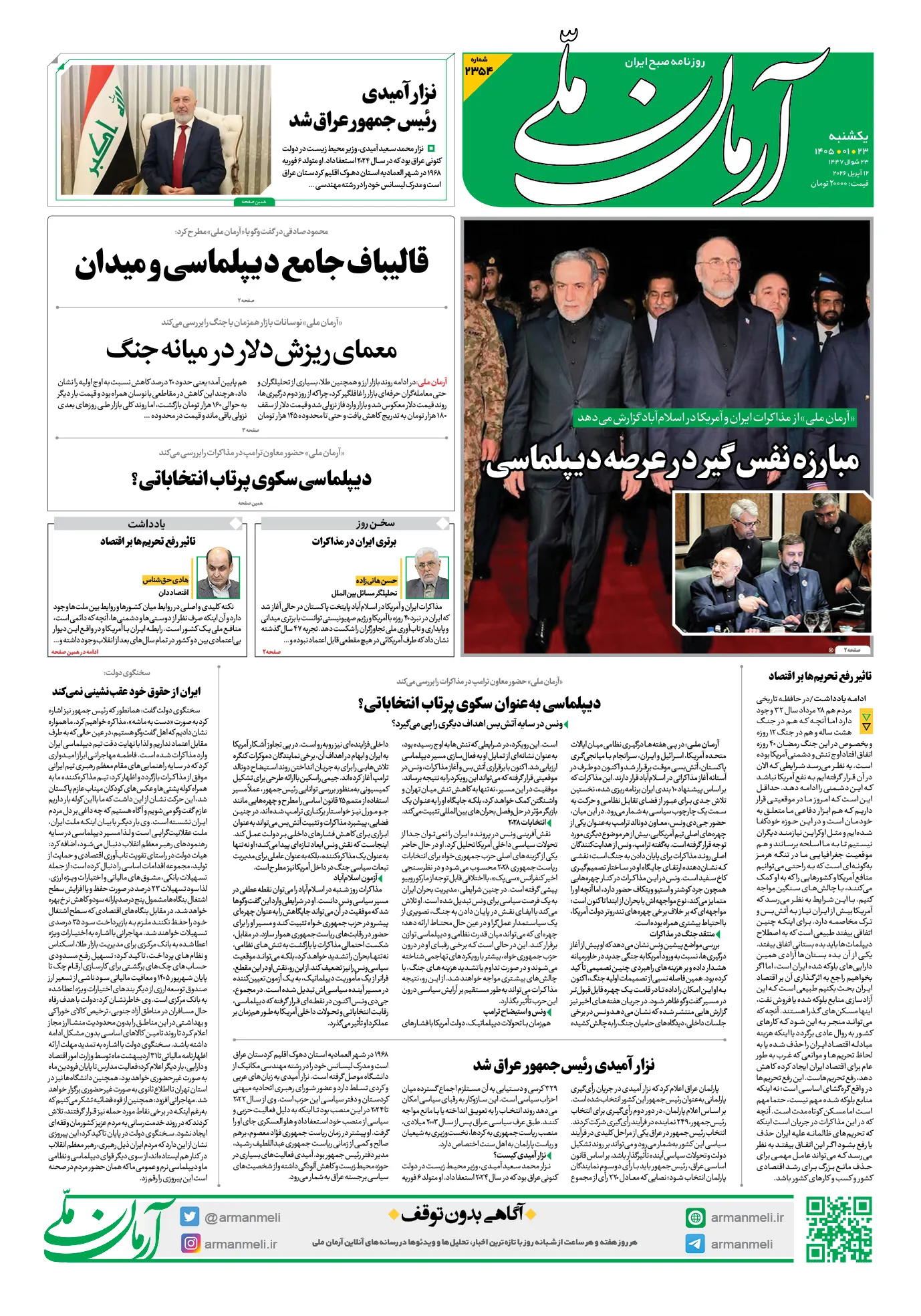 روزنامه آرمان ملی - یکشنبه - ۲۳ فروردین - ۱۴۰۵ - شماره ۲۳۵۴