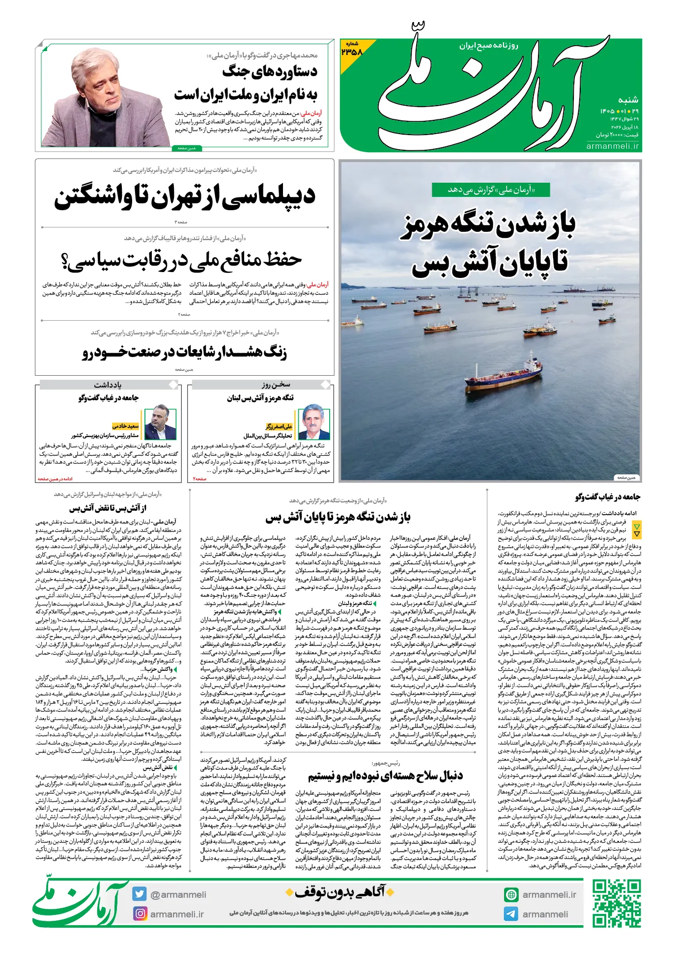 روزنامه آرمان ملی - شنبه - ۲۹ فروردین - ۱۴۰۵ - شماره ۲۳۵۸