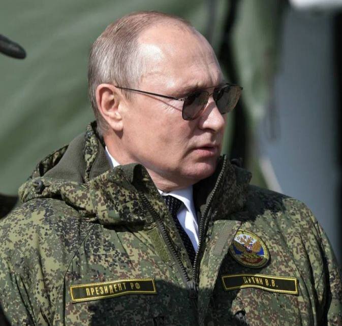 پوتین با لباس نظامی و عینک آفتابی پس از پیروزی روسیه+ عکس