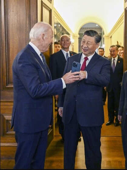 تصویر نمایش داده شده در تلفن بایدن، عکسی بود که شی در سال ۱۹۸۵ در اولین سفر خود به ایالات متحده گرفته بود. سانفرانسیسکو اولین ایستگاه سفر شی بود. مانند هر بازدیدکننده دیگری از شهر، شی هم در کنار پل گلدن گیت عکس گرفت.