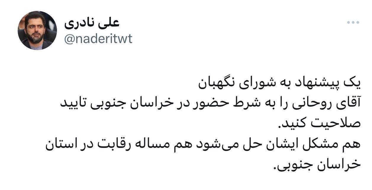 مدیرعامل خبرگزاری ایرنا خطاب به شورای نگهبان نوشت: روحانی را به شرط حضور در خراسان جنوبی، تایید صلاحیت کنید.