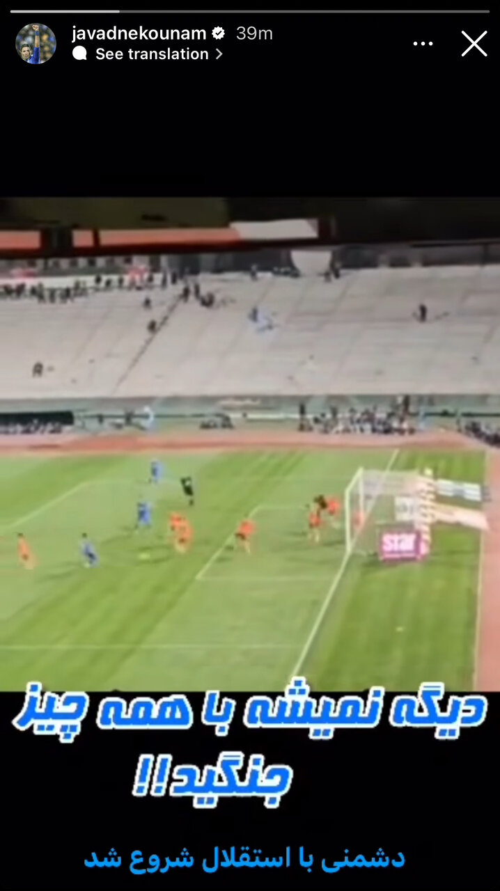 جواد نکونام، سرمربی آبیپوشان پس از بازی با انتشار یک استوری از صحنه مشکوک به گل تیمش، نوشت: «دیگر نمیشود با همه چیز جنگید. دشمنی با استقلال شروع شد.»